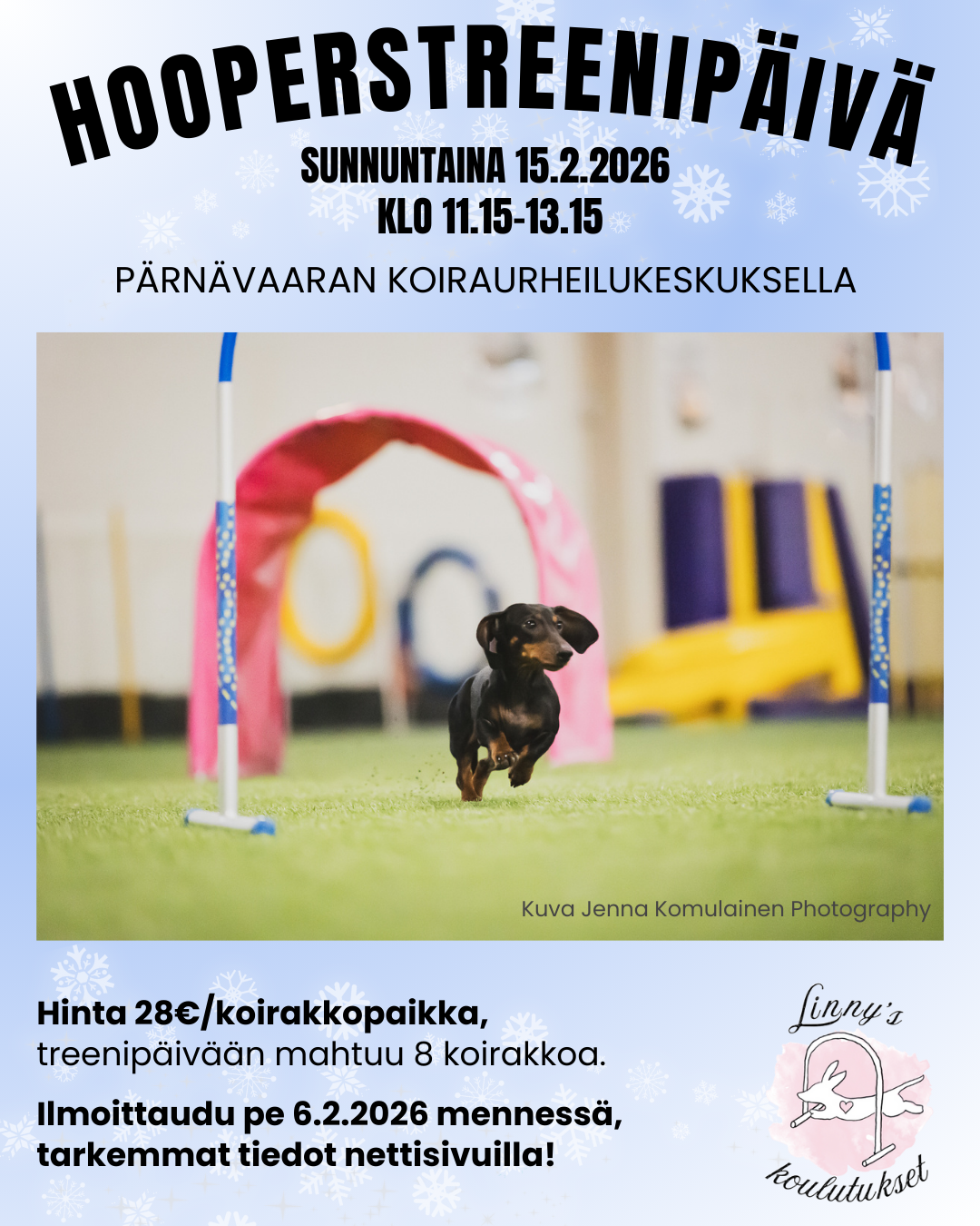 Linny's koulutukset tarjoaa koiralähtöistä ja positiivisiin koulutusmenetelmiin pohjautuvaa hoopersvalmennusta erilaisiin tarpeisiin yksityishenkilöille, seuroille ja treeniporukoille.
